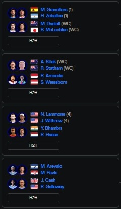 The final quarter is full of intrigue for me. From the debut of Gonzalez-Molteni to the 2024 debut of Koolhof-Mektic, there are more questions than answers. Toss in the power combo of Eubanks-Shelton and the regular pairing of Erler-Miedler, and this quarter really could go just about any way. I’m probably leaning towards Eubanks-Shelton in their clash against the two seeds (Gonzalez-Molteni). As for Koolhof-Mektic, will their chemistry return quickly? Having had different partners just last week, it’s not an ideal set up, but these are two savvy vets who know how to compete well. It should be noted their 2020 team up started rather middling in Australia with four matches split between Adelaide and Melbourne. They didn’t really get going until making a final in Marseille in their fourth tournament together. Erler-Miedler made the semifinals here a year ago and certainly could take advantage of any rust that Koolhof-Mektic need to work off.