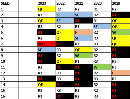 *Underdogs won 19 of the 63 matches at last year’s Australian Open. Only five came in the opening round with two of those via seeds being upset. The best bite came in round two where six of the 16 matches went the way of the dog. That 19 was the exact number of dog hits in 2022 with 16 underdog scores in 2021. If you’re looking for the underdog wins, rounds one and two are a great place to start, especially if you track who the seeds are playing. If you look at the last five years, nearly half the seeds or more are gone after two rounds.