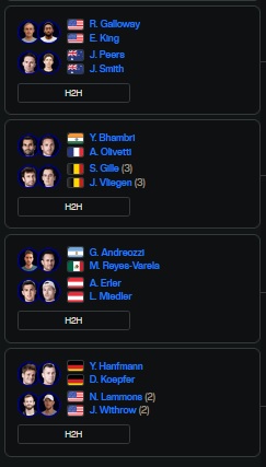 Mies is the doubles specialist in this duo, but Struff we’ve seen with plenty of success in singles and doubles. Struff is 4-0 in doubles in 2024 with all of those coming in a glorious championship run in Dubai alongside Tailon Griekspoor. Mies and Struff have never paired up, but both players have shown the ability to mesh with different partners, so I’ve got my eyes on these guys as potential dark horses.