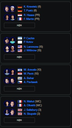 The big question for me in this half is if Salisbury-Skupski can get out of the gates with a win? If they can, then it’s game on and they might well be the favorites in this half. Otherwise, the consistency of Krawietz-Puetz could pay off here or a resurgent Arevalo-Pavic look threatening too. Fritz-Shelton and Mahut-Olivetti are the two unseeded teams I can’t quite look past as being outsiders with a chance of getting hot.