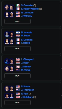 I put these two first timers together because they’re squaring off in round one. There’s not much to go on with Felix and Big Foe as they’ve combined to play two doubles matches in 2024. Both have had some sporadic success at times in doubles, but on clay in Rome, I’m not sure what they’re capable of this week. The same could be said for Bublik-Shelton. It’s a fun team in theory, but so was Bublik-Shapovalov last week and they got routed in Madrid. Bublik has lost six straight in doubles, while Shelton has been better at 5-5 this year. It’s a toss up, but the winner has an interesting spot in round two that I’ll touch on more later.