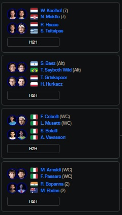The final quarter sees (2)Bopanna-Ebden and (7)Koolhof-Mektic as your seeds. For Bopanna-Ebden, it’s been a while since we haven’t seen a one in front of their names. Unfortunately for them, they can’t get away from Bolelli-Vavassori. They could meet again in this heavily Italian half that sees all three unseeded duos with Italians paired up together. You’ve got Cobolli and Musetti as first time teammates, while Arnaldi-Passaro do have some experience. Will that give them a shot against Bopanna-Ebden? The two seeds survived their debut a year ago in Rome, but were knocked out by de Minaur and Kubler in round two. They’ve lost both openers on clay so far, so there is some pressure. I still expect a round one win and perhaps we get to see them battle Bolelli-Vavassori for the third time after quite a few tournaments where a potential showdown looked likely, but did not happen. Bolelli-Vavvasori continue to be quiet consistency for the most part and perhaps it has all led to them getting a shot to break through against Bopanna-Ebden on home soil. The other half sets up well for Koolhof-Mektic who could use a run. It’s Haase-Tsitsipas in round one, but it’s Griekspoor-Hurkacz who should be more of a concern IF we get that matchup in round two.