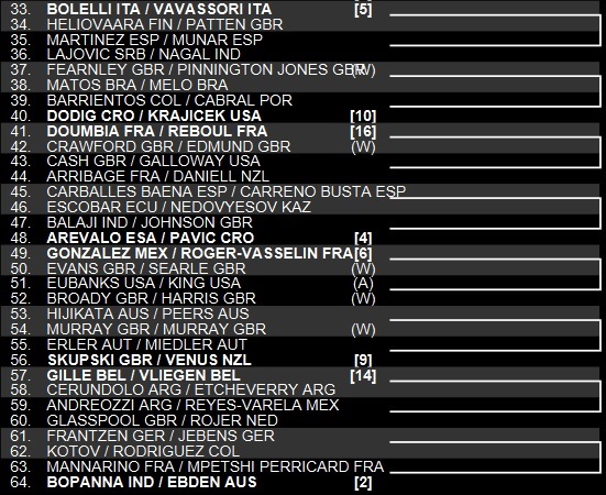 They draw the Tsitis-bros as I discussed earlier. The eleven seeds debuted here last year with a win and a loss. They rarely play on grass, so this figures to be a pretty even matchup to me. If the Greeks serve well, they should be in it to win it.