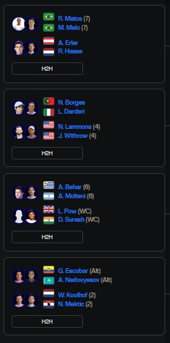 For Koolhof-Mektic, it may be all about getting past their opener against Escobar-Nedovyesov. The rest of the quarter looks pretty open to them making a run if they survive their opener. Of course the two seeds have also only won back-to-back matches in one of their last five tournaments. Escobar-Nedovyesov are certainly capable, but also have rarely notched wins against upper echelon teams. On the other side of the quarter, you have veterans Behar-Molteni in a rare pairing. They have played three matches together with the last being in 2018. This will be their first time on hard courts together. They battle inexperienced players in local Wake Forest University product Luca Pow and Suresh Dhakshineswar. Pow had a great season on the collegiate level, so it will be interesting to see if those two can at least be competitive.