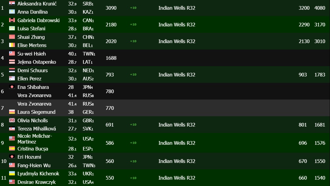 The first leg of the Sunshine Double offers plenty of promise to pairs looking to rise up the rankings as well as one-offs looking to make a statement. Muhammad-Schuurs used their championship here a year ago as the catalyst to making the year-end WTA Finals in spite of just one more title after Indian Wells. That’s what 1,000 points can do for you. There are several pairs in the current rankings who would love to make hay this week: