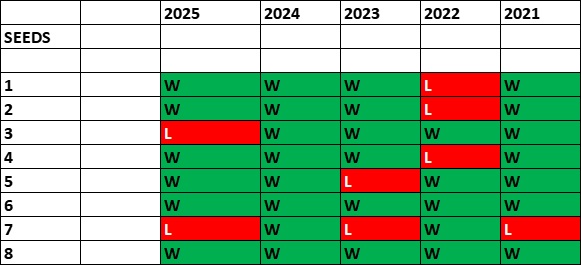Only two seeds dropped their openers last year and no more than three have gone one and done since 2022. That doesn’t mean they are all safe from an early upset as I will focus on in just a little bit.