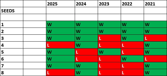 *Arevalo-Pavic completed the Sunshine Double in 2025 by taking the Miami final 7-6(3), 6-3 over Cash-Glasspool. They were 1.51 (-196) favorites in the championship match. Their win marked the 7th straight run of the Miami Open where the favorite won the finale. They were also the second straight #1 seed to take the men’s titles (Bopanna-Ebden).